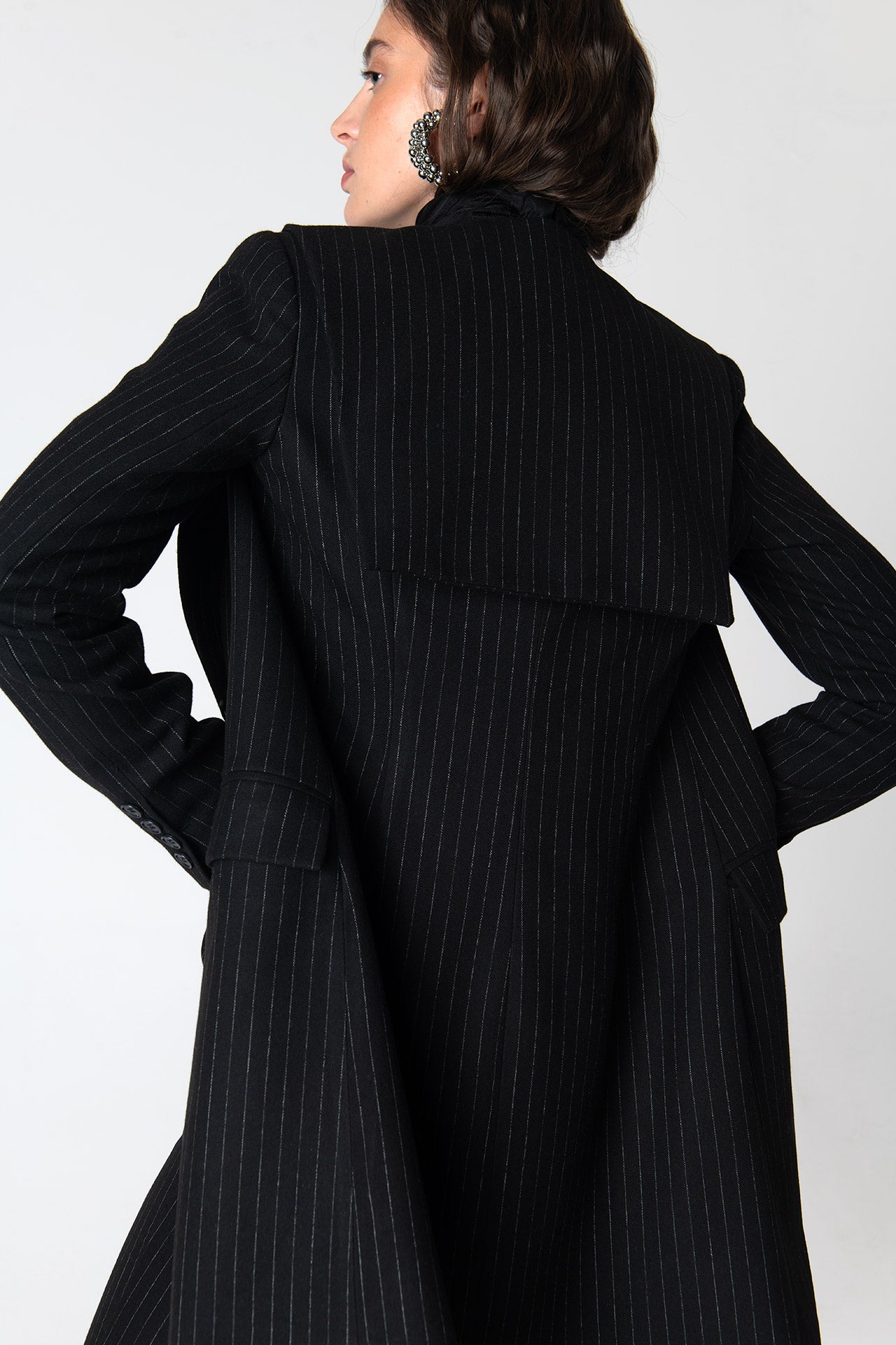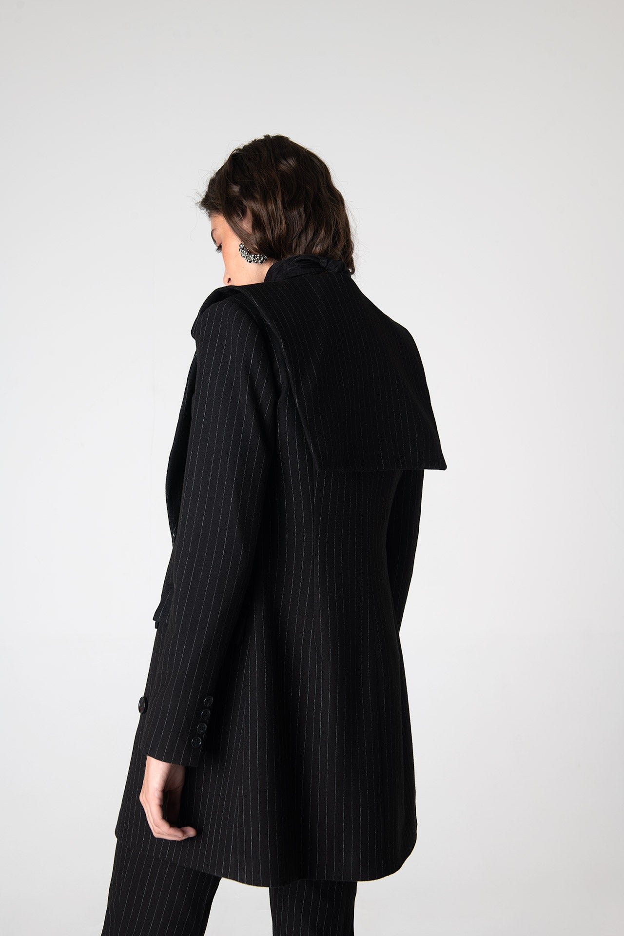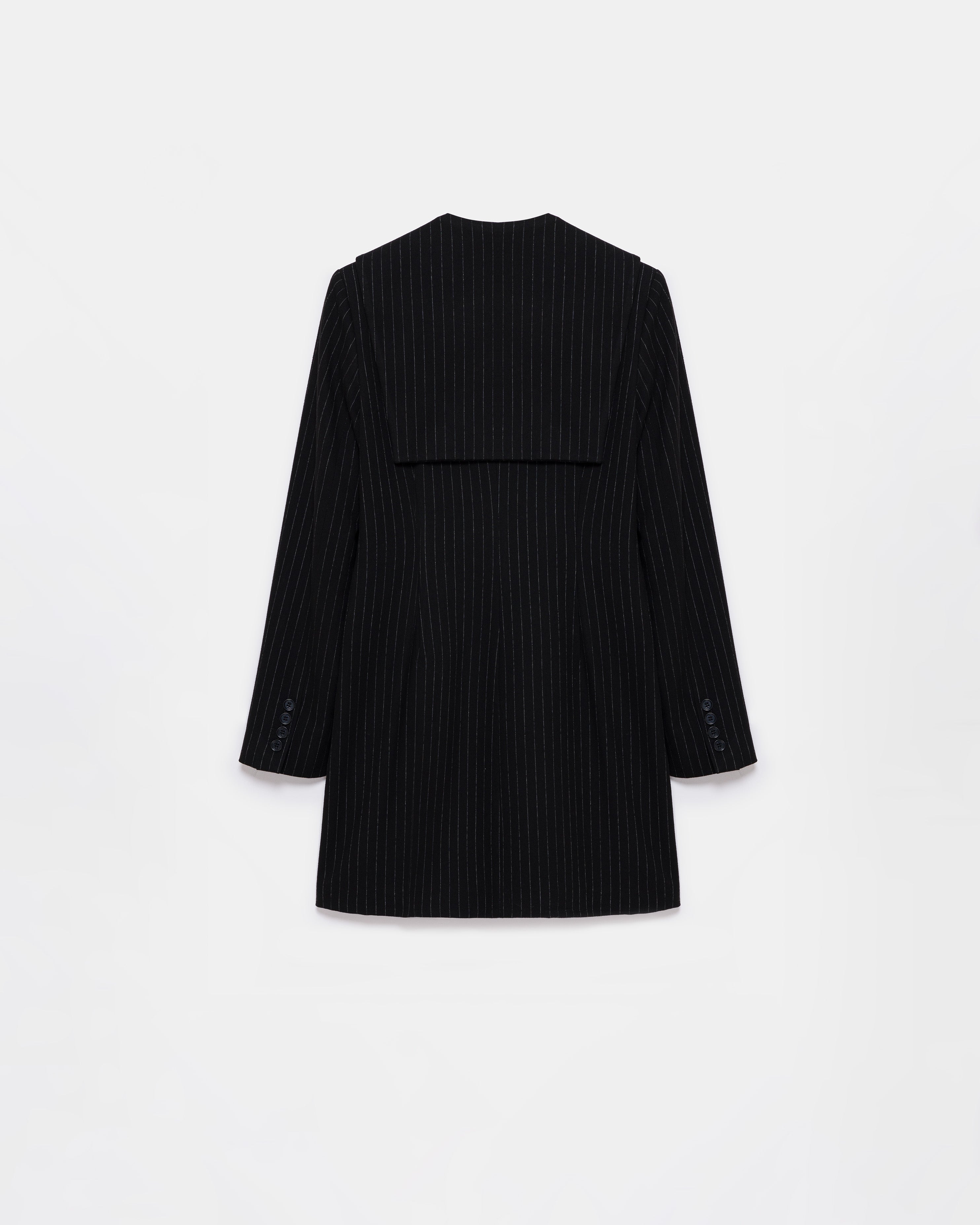 Kruvaze ceket elbise, hem elbise hem de ceket olarak kullanılabilir olması için tasarlanmıştır, bu sayede işlevselliği ön planda tutar. Feminen bir görünüm sağlayan vücuda saran kalıbı, yarı kırlangıç yakası ile tamamlanır ve arkada denizci yakasına dönüşür. Çizgili kumaş seçimi koleksiyonun temasına uygundur ve iki farklı renk seçeneği mevcuttur.
