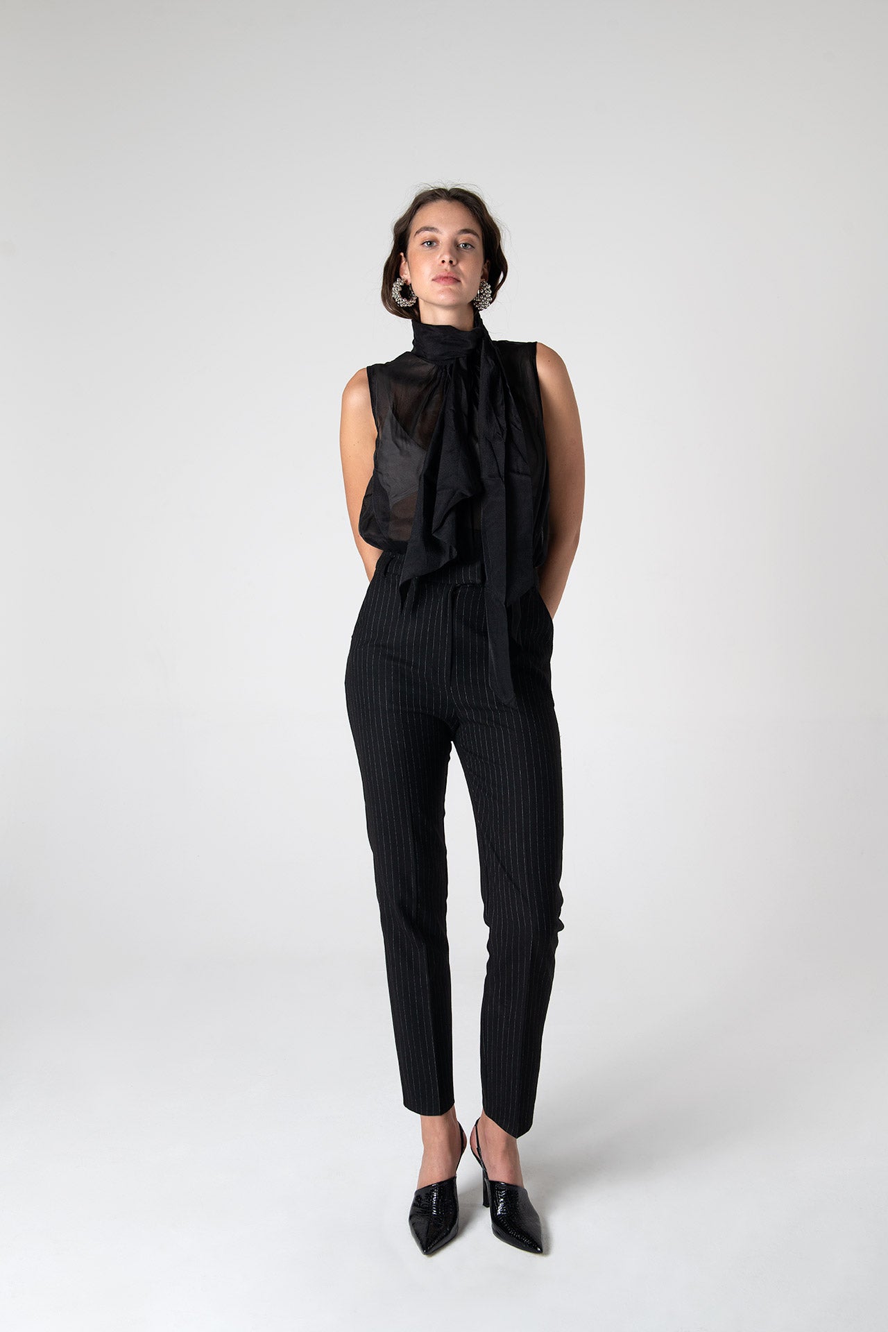 Kumaş pantolon, kruvaze ceket elbise ile birlikte düşünülerek tasarlandı. Zamansız tasarımı ve kaliteli kumaş seçimiyle, tek başına da tercih edilebilir. Slim fit kesimi ve yüksek bel kalıbıyla, her ortama uyum sağlamak hedeflenmiştir.